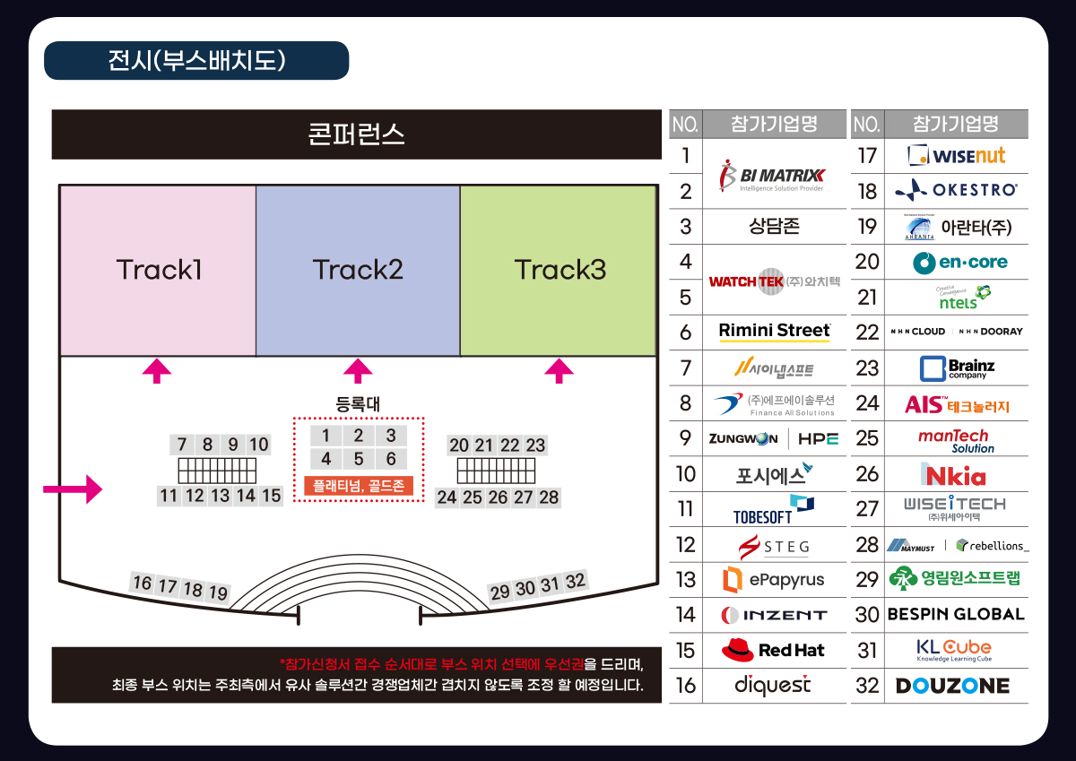 | 14:30~15:00(30’) | 소버린 AI 를 위한 Full stack, Turnkey Private Cloud AI Private Cloud AI 한눈에 보기 HPE 김명치 매니저 | 공공 용역통제시스템 위즈헬퍼원의 진화-3대 보안 가이드라인 대응 국가정보보안기본지침 등 공공기관이 준수해야 할 3대 보안 가이드라인을 온라인 용역 통제시스템 관점에서 재해석하고, 위즈헬퍼원을 기반으로 접속·행위·증적을 하나의 흐름으로 관리하는 운영 메커니즘을 설명합니다. 아울러 AI 기반 이상행위 탐지와 감사 자동화 등 차세대 용역통제시스템의 고도화 방향과 로드맵을 제시합니다. 아란타 박미연 대표이사 | 검색을 넘어 추론으로: 생성형 AI 기반 차세대 문서 처리 플랫폼- MaiWai.Document MaiWai.Document는 방대한 정형 및 비정형 문서를 AI 기술로 자동 분석하고 디지털화하는 지능형 문서 처리 솔루션입니다. 이 솔루션은 비즈니스 환경에서 수작업으로 문서를 처리할 때 발생하는 느린 속도, 인적 오류(Human Error), 그리고 작업자의 주관적 해석에 따른 일관성 결여 문제를 해결하기 위해 반드시 필요합니다. 에프에이솔루션 장정열 대표 |